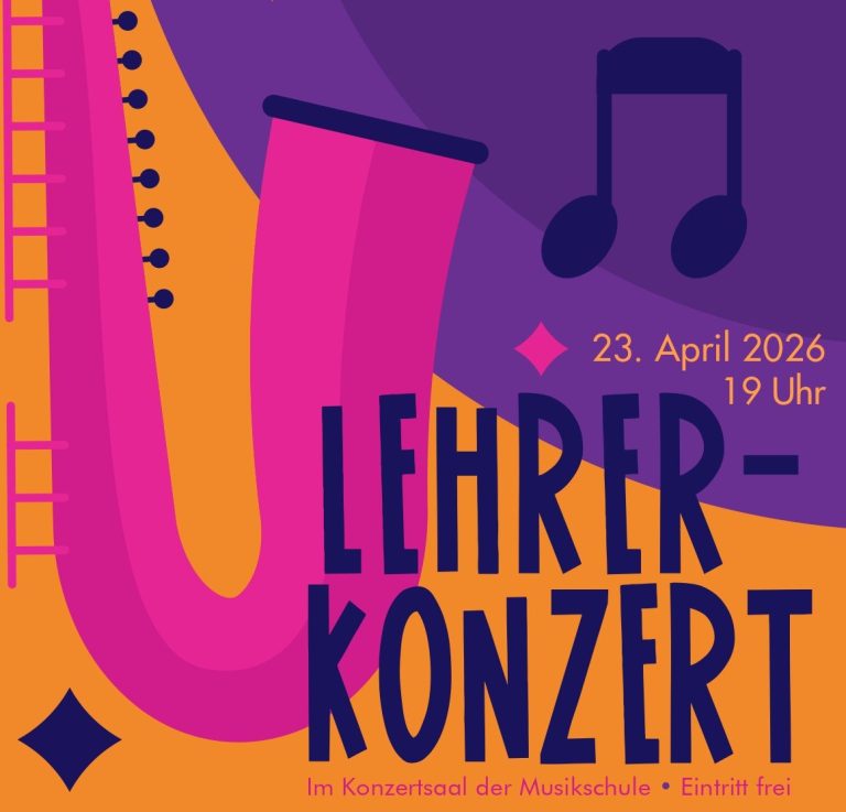 Am 23. April 2026 um 19 Uhr laden wir Sie und euch alle zu unserem Lehrerkonzert in den Konzertsaal der Musikschule ein.
